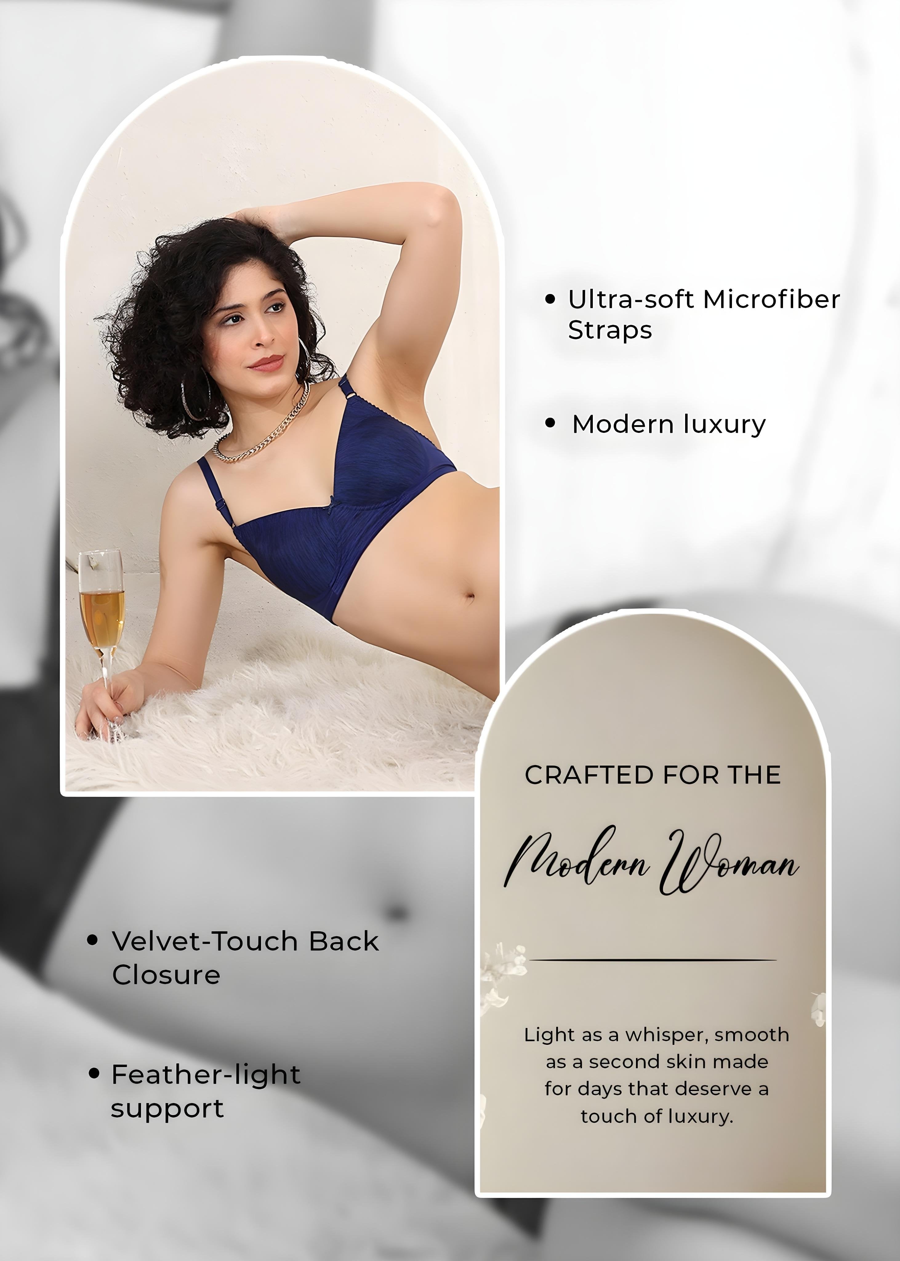 Royal Blue Heathered T-Shirt Bra for Women - Lightly Padded, Full Support Daily Wear
