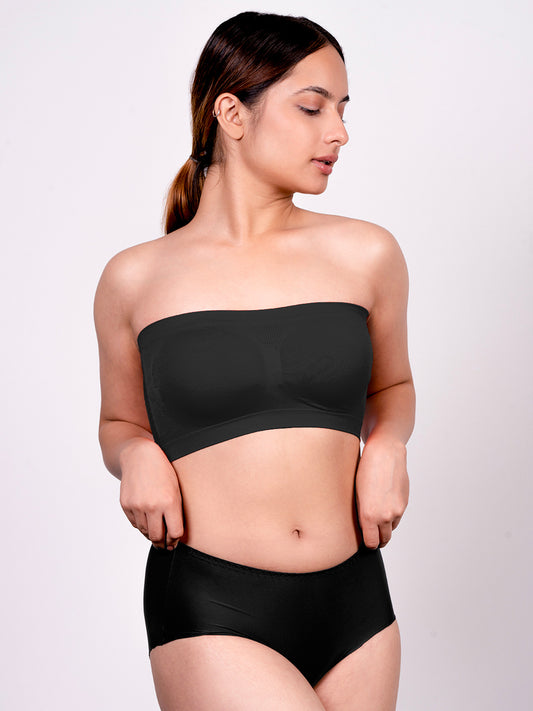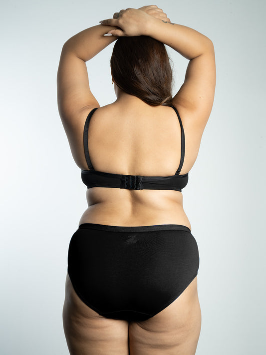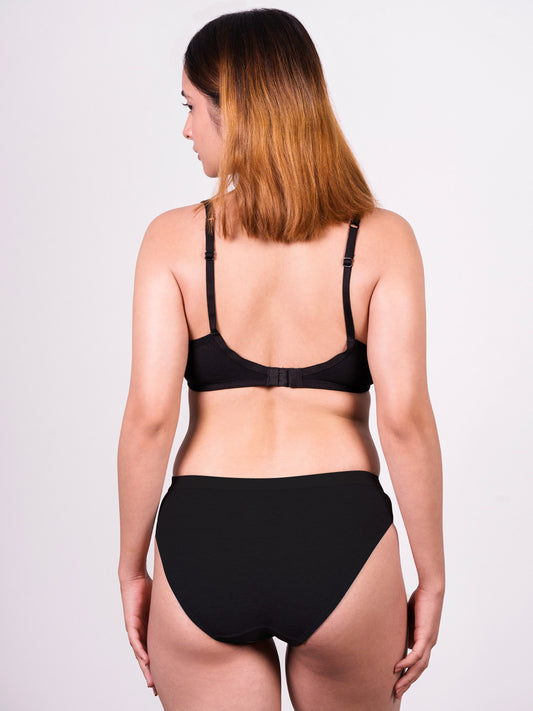 revoue comfy padded wirefree low coverage black t-shirt bra and black hipster panty combo