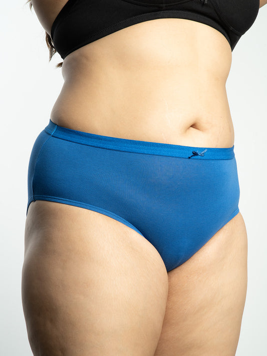 revoue comfy padded wirefree low coverage black t-shirt bra and blue hipster panty combo