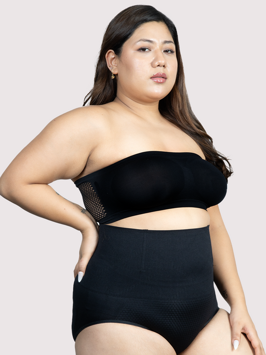 revoue premium black nude cup lingerie set (laced double layered padded wired full-cup bralette & low waist bikini panty)