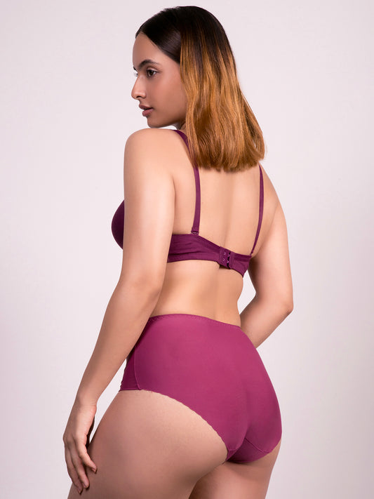 revoue comfy padded wirefree low coverage wine t-shirt bra and wine seamless hipster panty combo